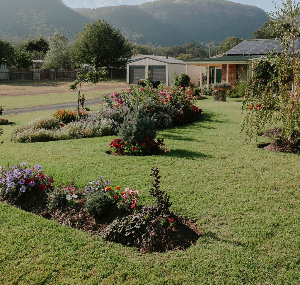 Colleen and Andrew invite you to view their recently updated garden. Nestled within the picturesque landscape of their motel, a hidden gem awaits: a charming rose, succulent, and cacti garden overlooking the sprawling green expanse of the Henbury golf course. Bordered by mountain ranges Coomber Melon and Coxs Crown, their stunning rose beds display over 150 varieties. There is something for every rose enthusiast!