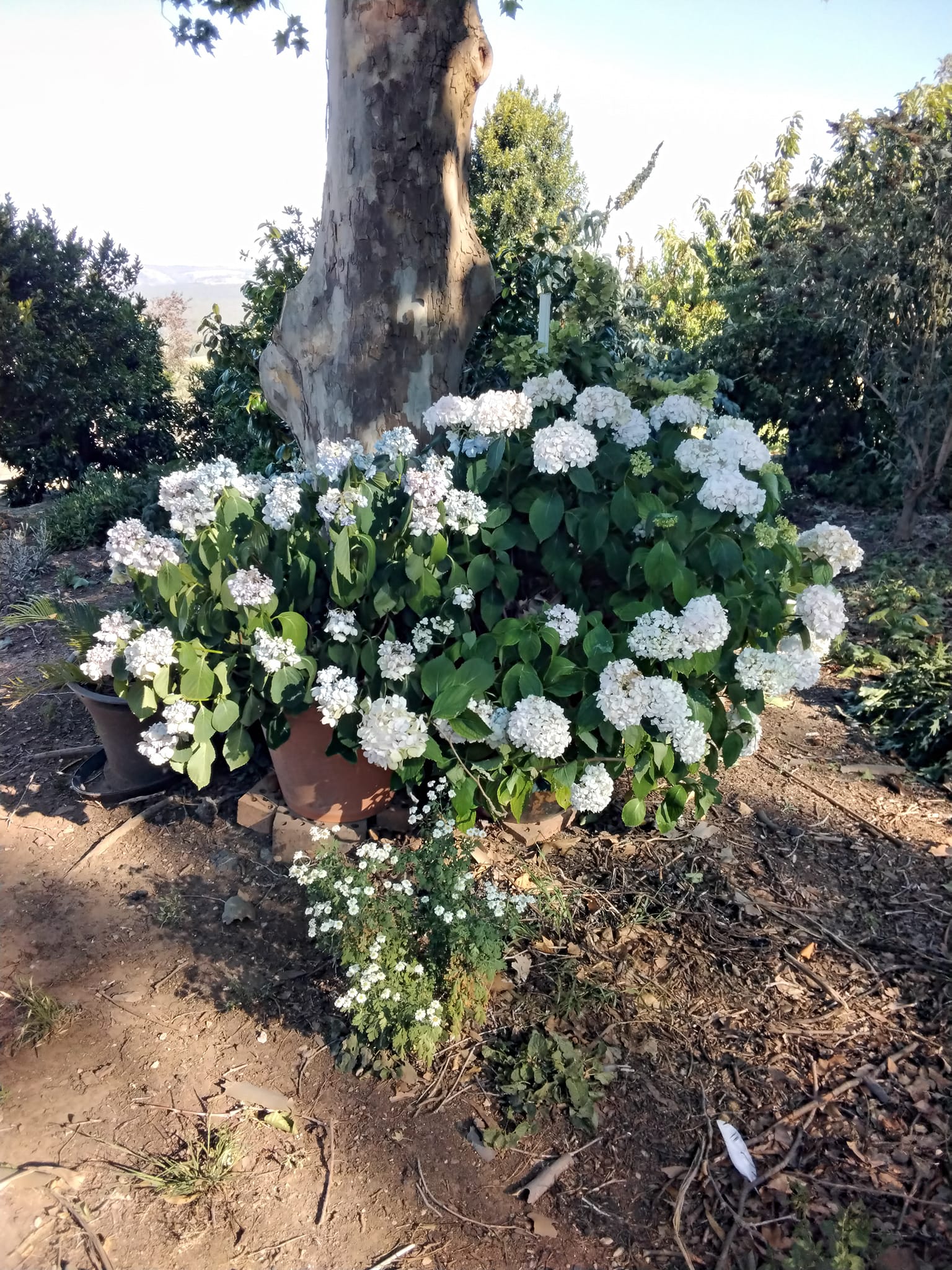 Raised vegetable beds have been added and fruit and olive trees, and many herbs can be spotted around the gardens of over half an acre.